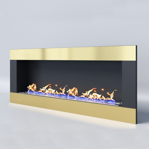 Биокамин черного с золотым цвета, который прекрасно подойдет как встраиваемый вариант для украшения вашего дома.