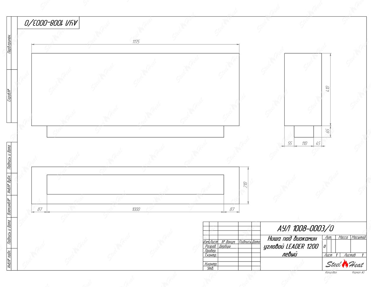 Встраиваемый Биокамин угловой SteelHeat Leader 1200 левый предназначен для встраивания в глухие ниши из гипсокартона, кирпича, пеноблоков, бетона.